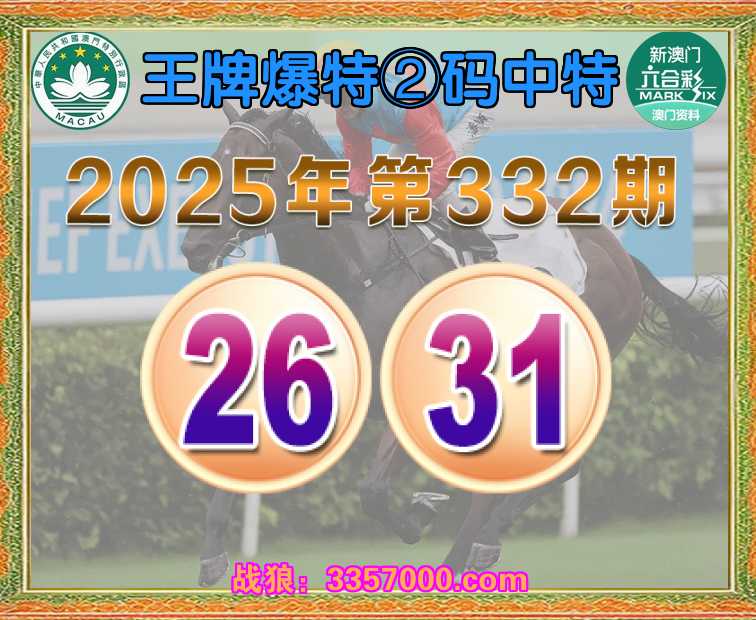332期: ⛩️『王牌爆特』 ⛩️②码中特⛩️【26.31】开:26